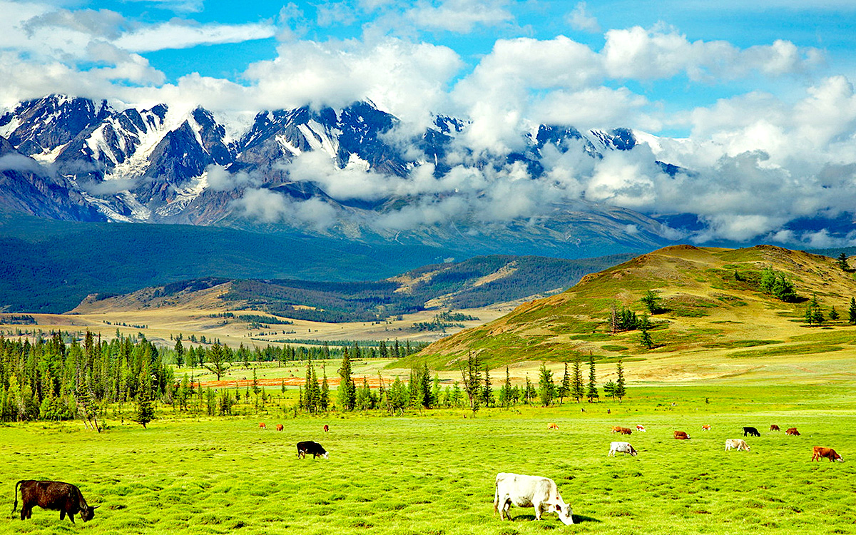 Молочные стада на солнечных горных лугах