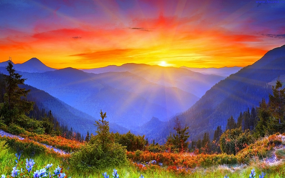 Закат солнца за вершинами гор