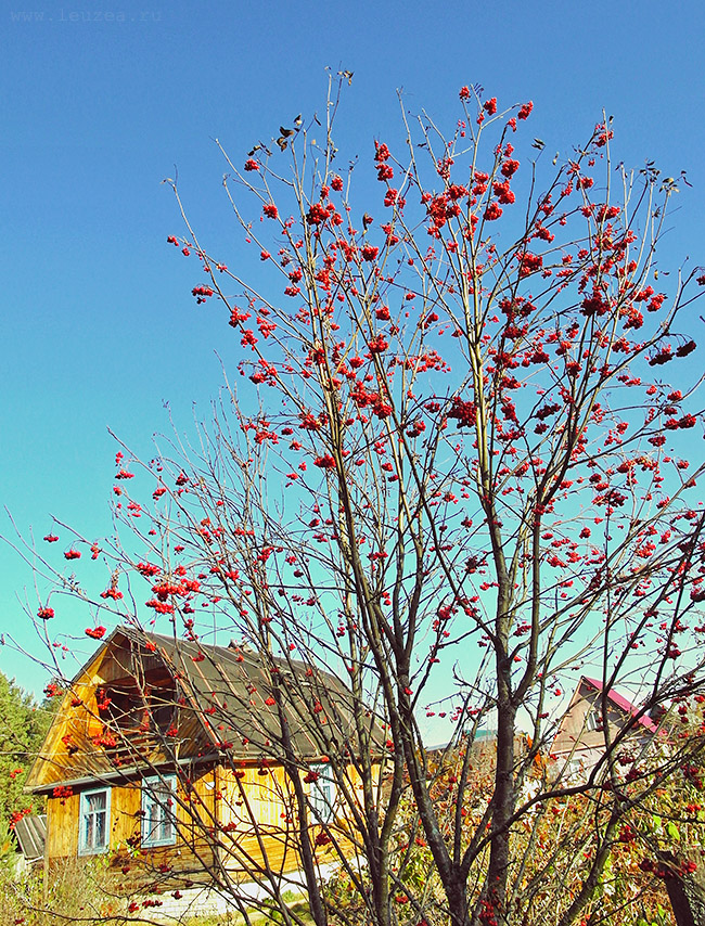 Морозный ясный солнечный день, на улице минус 12. Рябина горит огнем, завлекая птиц.