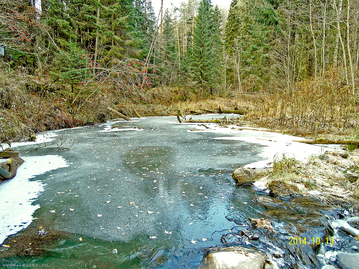 Первый лед на таежной речке. На льду у порога было минус 9 градусов.