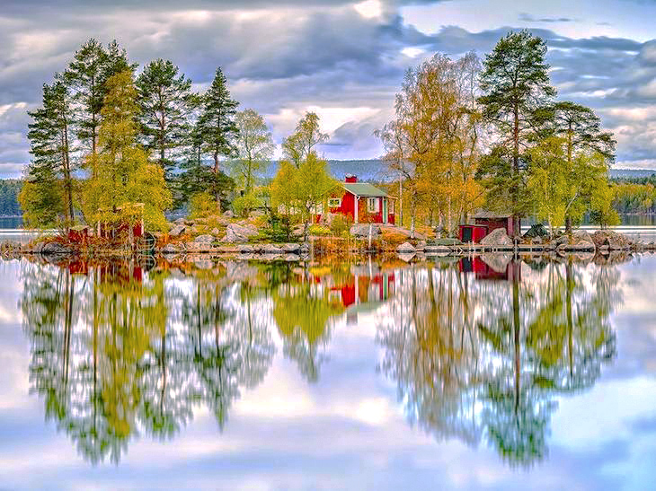 Осеннее отражение красок природы в озере - #фото