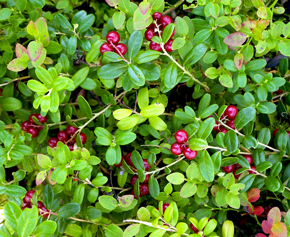Брусника - вечно-зеленый кустарник из сем. Вересковых.