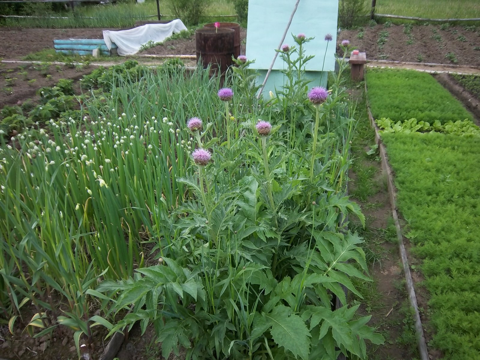 Левзея на грядке на даче.