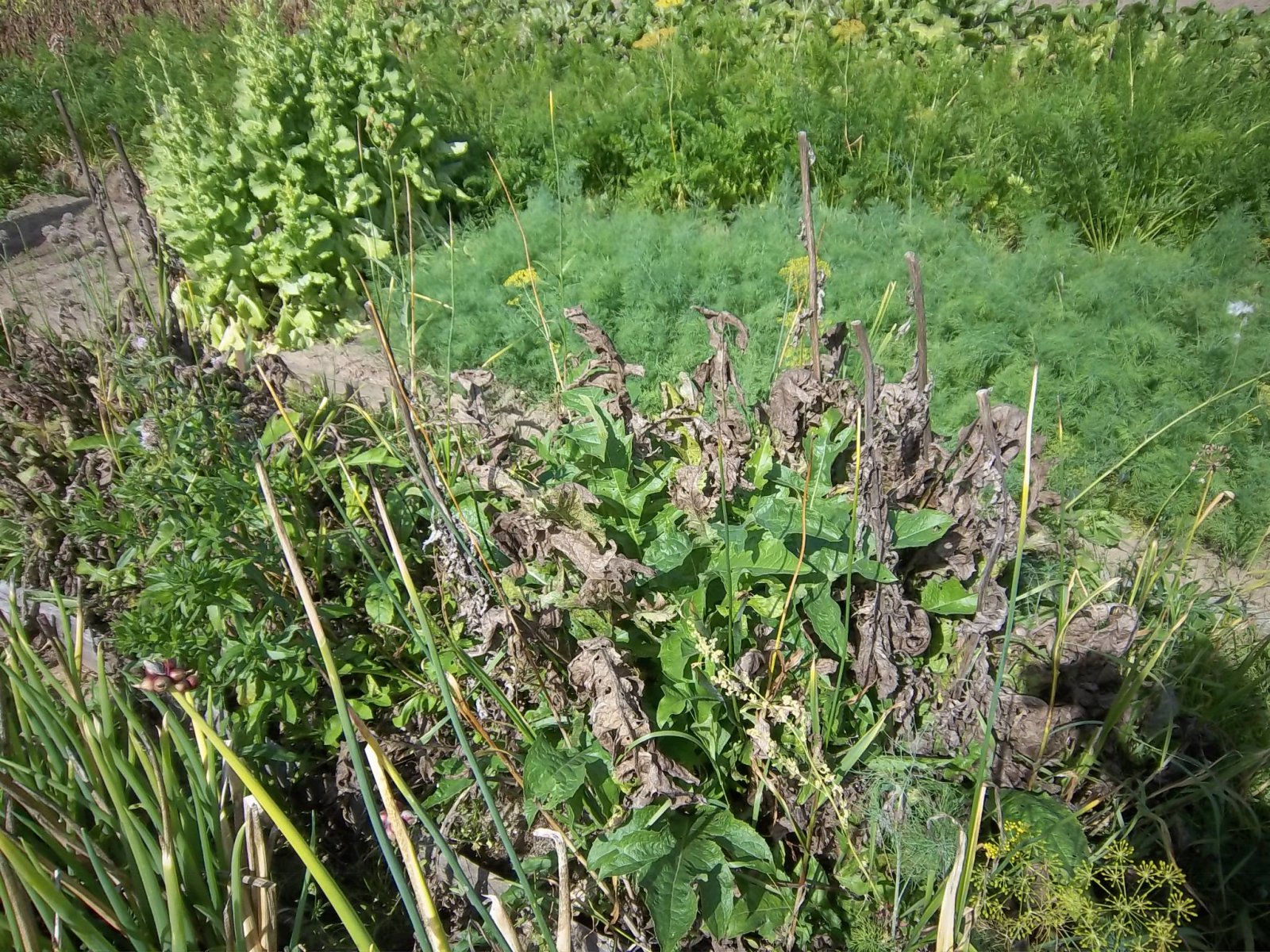Левзея 18 июля 2012 года на грядке, семена собраны, некоторые листья почернели, но отрастают и свежие